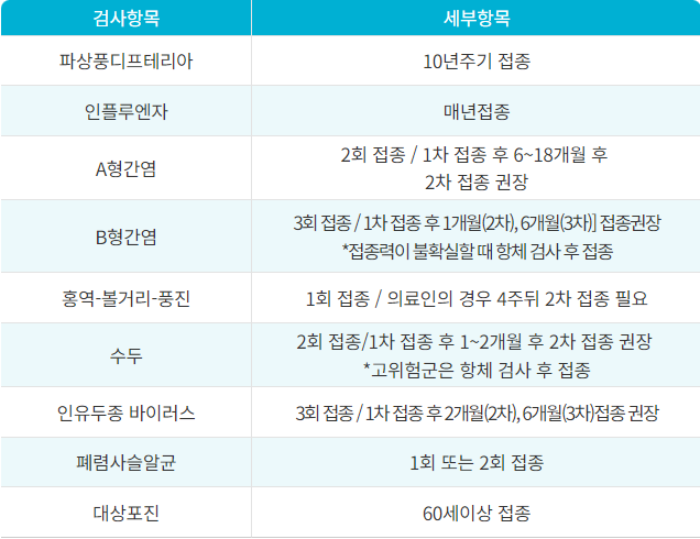- 최근 발열이나 특별한 건강 상 문제가 없었는지 접종 전에 반드시 확인합니다.